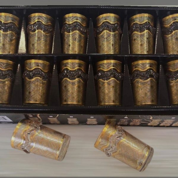 12 verres à thé détail doré Ensemble de 12 verres marocains colorés à motifs dorés traditionnels très haute qualité et finition