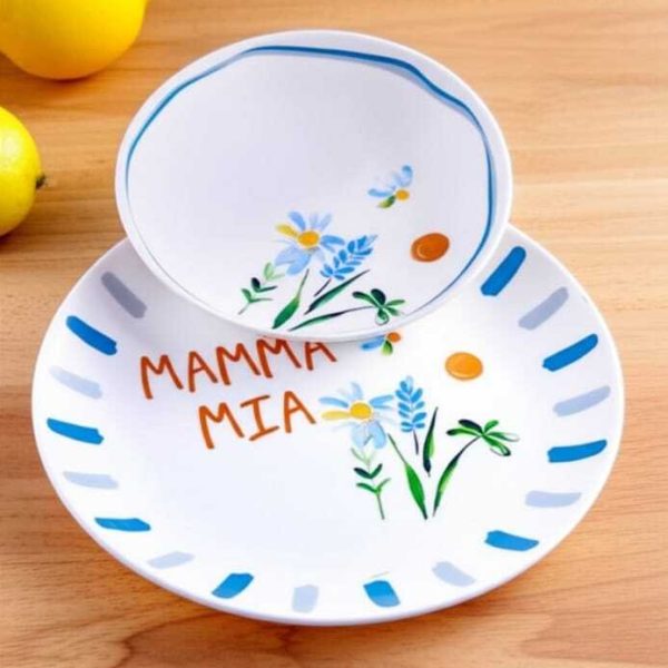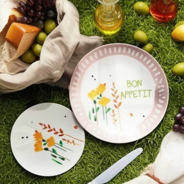 2 Assiettes en porcelaine imprimées motifs 19cm et Assiette 25 Cm-Compatible lave vaisselle