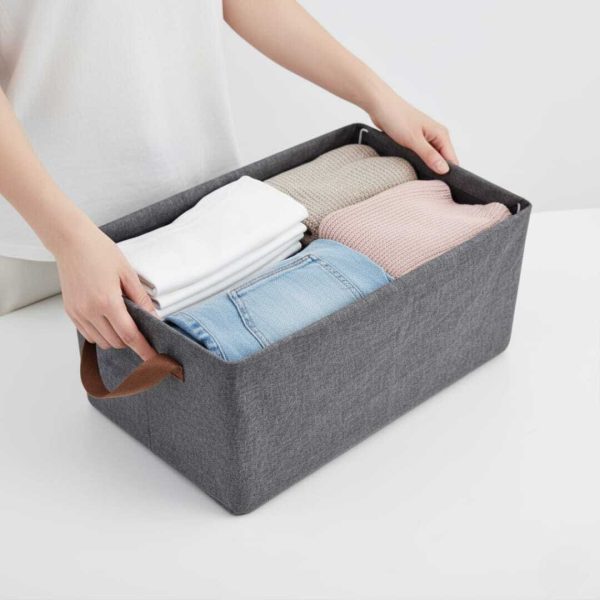 1 ranangement pliables avec poignée, 18 l, pour étagères, tiroirs, en tissu, pour vêtements, draps, pulls, t-shirts, couvertures (47 x 28 x 19 cm, gris)