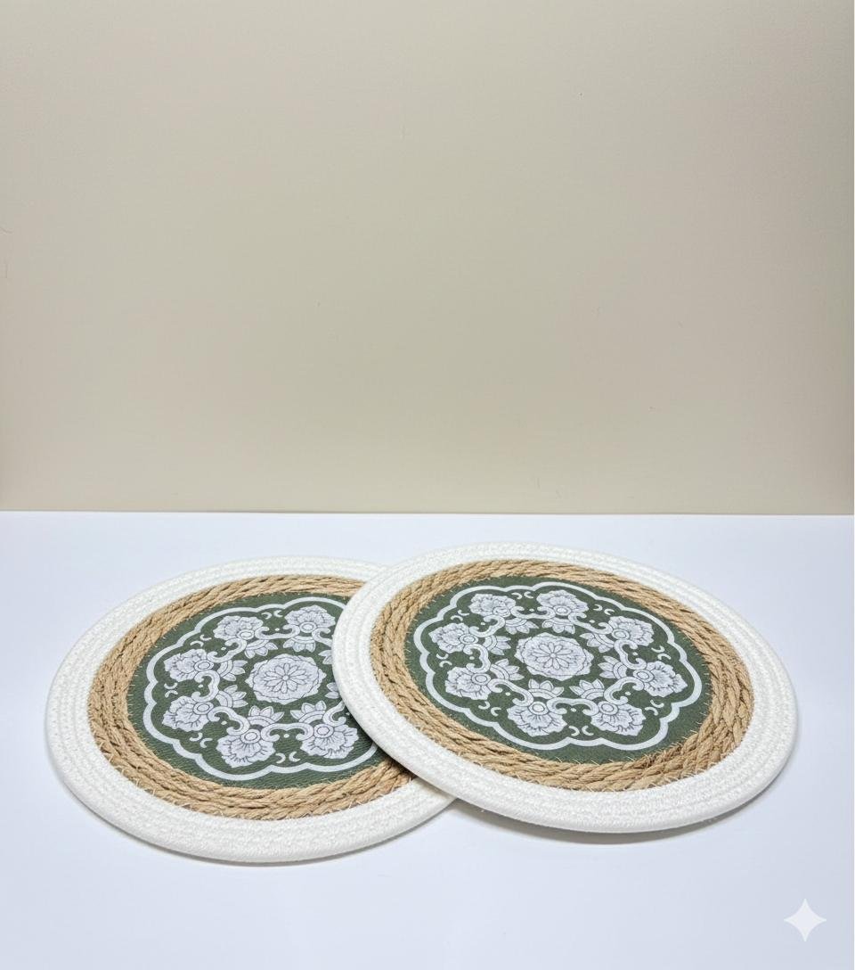 Ce set de table rond n’est pas qu’un simple accessoire de protection ; c’est une pièce de design qui définit l’ambiance de votre pièce. Le contraste entre la bordure tressée naturelle et le motif mandala raffiné offre un équilibre parfait entre rusticité et sophistication. Que vous l’associiez à des éléments en bois, en verre doré ou en céramique, il crée instantanément une atmosphère conviviale et soignée.