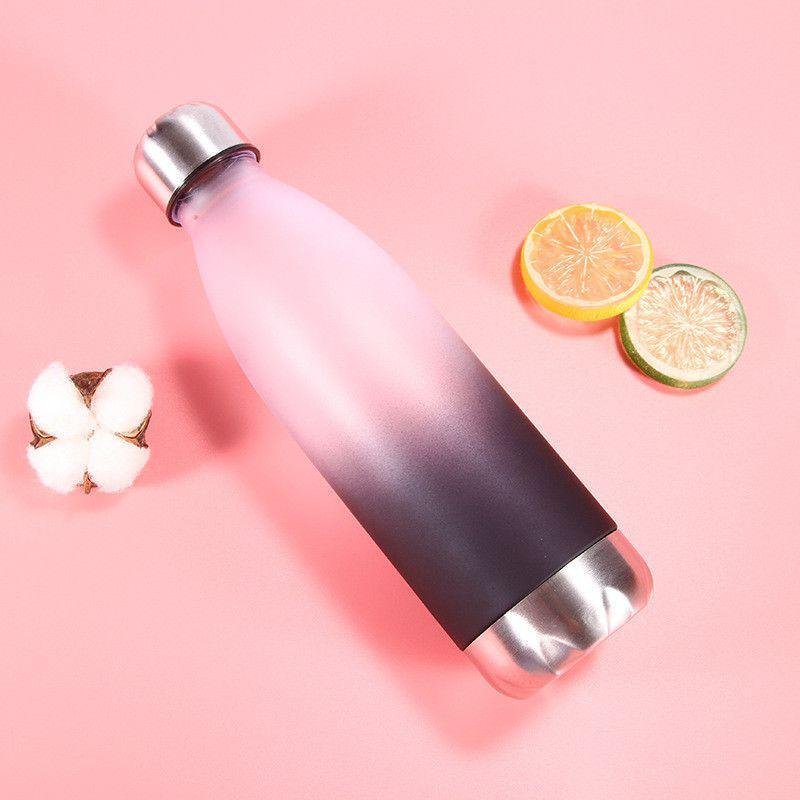 Bouteille d’eau de sport isotherme en plastique sans BPA 500ml avec couvercle inoxydable couleurs aléatoires