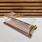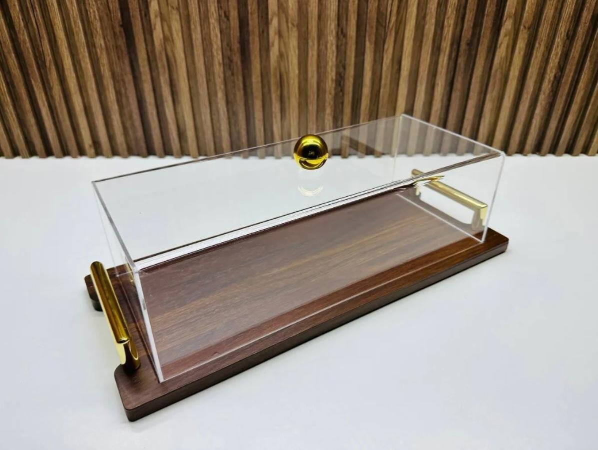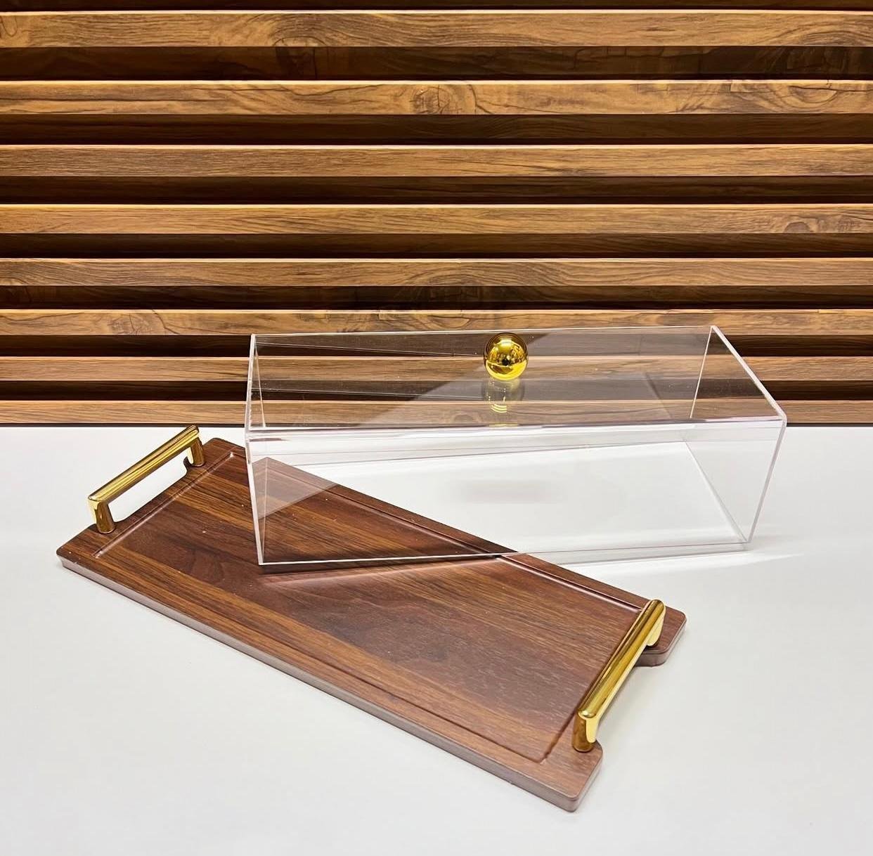 CLOCHE A GATEAU -SUPORT À GATEAUX GM 40/17cm EN BOIS AVEC DÉTAIL DORÉ INOXYDABLE ET COUVERCLE EN PLEXIGLAS