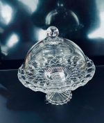 Cloche en Cristal Présentoir à Gàteau, Support à Gàteau, Plat à Gàteaux sur Pied, Stand à Gàteaux avec Cloche en Verre Shabby Chic et Romantique – Motif en Relief Décoratif – 18cm – Transparent