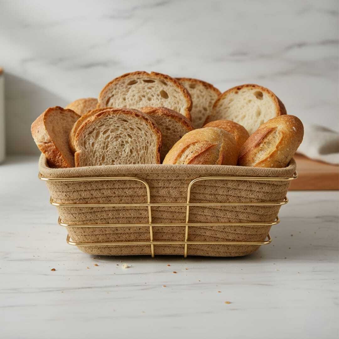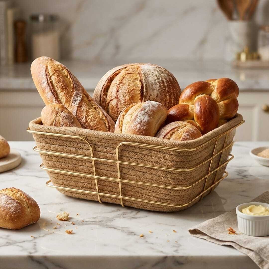 • Polyvalence : Bien que parfaite pour le pain, elle peut aussi servir de centre de table pour vos fruits ou de panier de rangement élégant pour vos accessoires de cuisine.