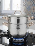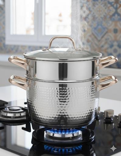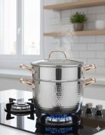 Couscousier 8L en Acier Inoxydable – Marmite à Vapeur 2-en-1 Finition Martelée – Collection Ayahome