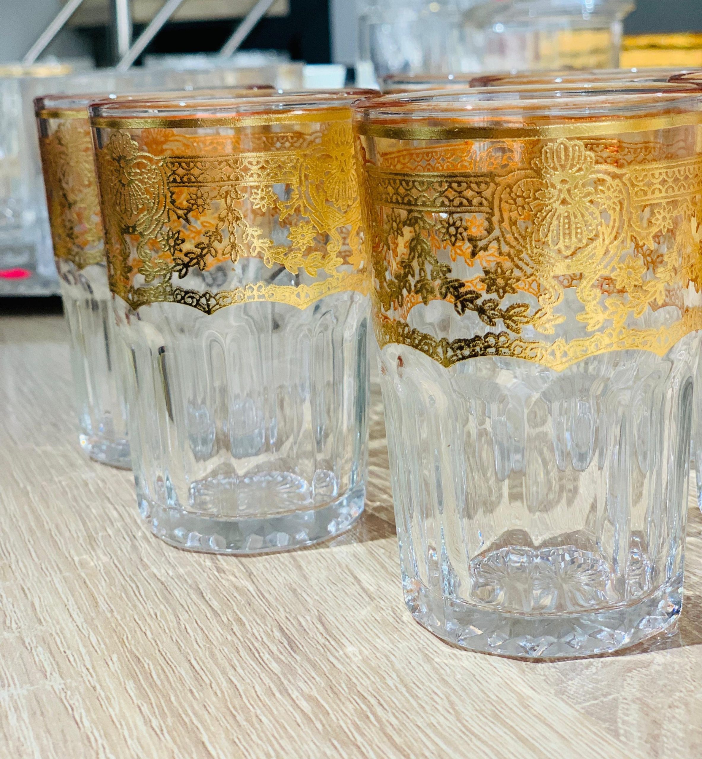 Ensemble de 12 verres marocains transparents à motifs dorés