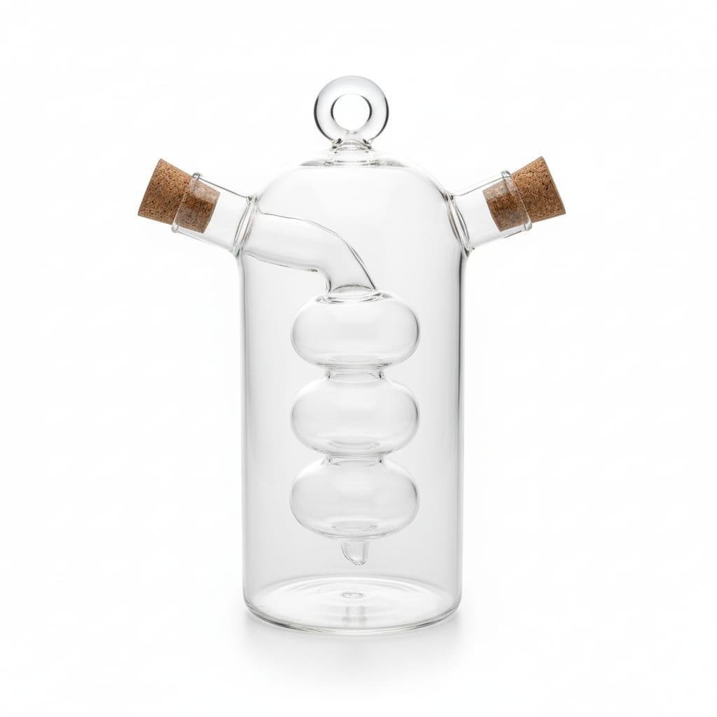 Huilier 2 en 1 -double en verre pour huile et vinaigre avec bouchons en liège – Design transparent élégant – 500 ml