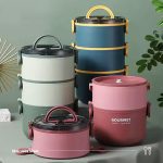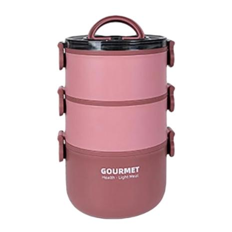 Lunch box 3 etg ronde intérieur inox et extérieur plastique alimentaire couleur rose