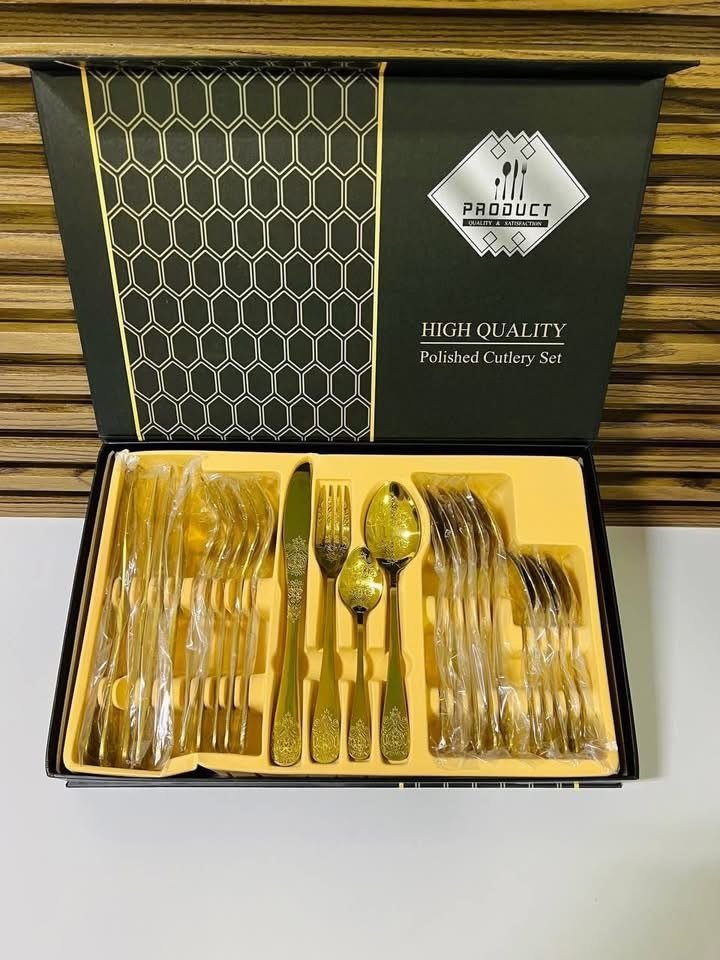 Ménagère de Couverts de Luxe 24 Pièces – Acier Inoxydable Finition Or – Coffret Cadeau Élégant – Service Complet pour 6 Personnes – Idéal pour Mariage et Réceptions