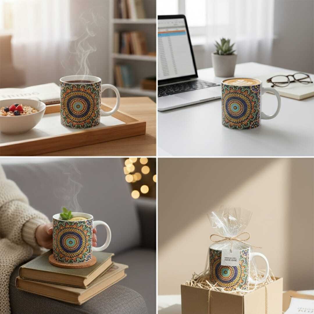 Apportez une touche d’élégance et d’originalité à vos pauses café avec ce magnifique mug en céramique décoré de motifs mosaïques colorés. Son design raffiné, inspiré de l’art oriental, en fait une tasse idéale aussi bien pour un usage quotidien que pour offrir en cadeau. Solide et confortable à prendre en main, elle convient parfaitement pour le café, le thé ou toute autre boisson chaude.