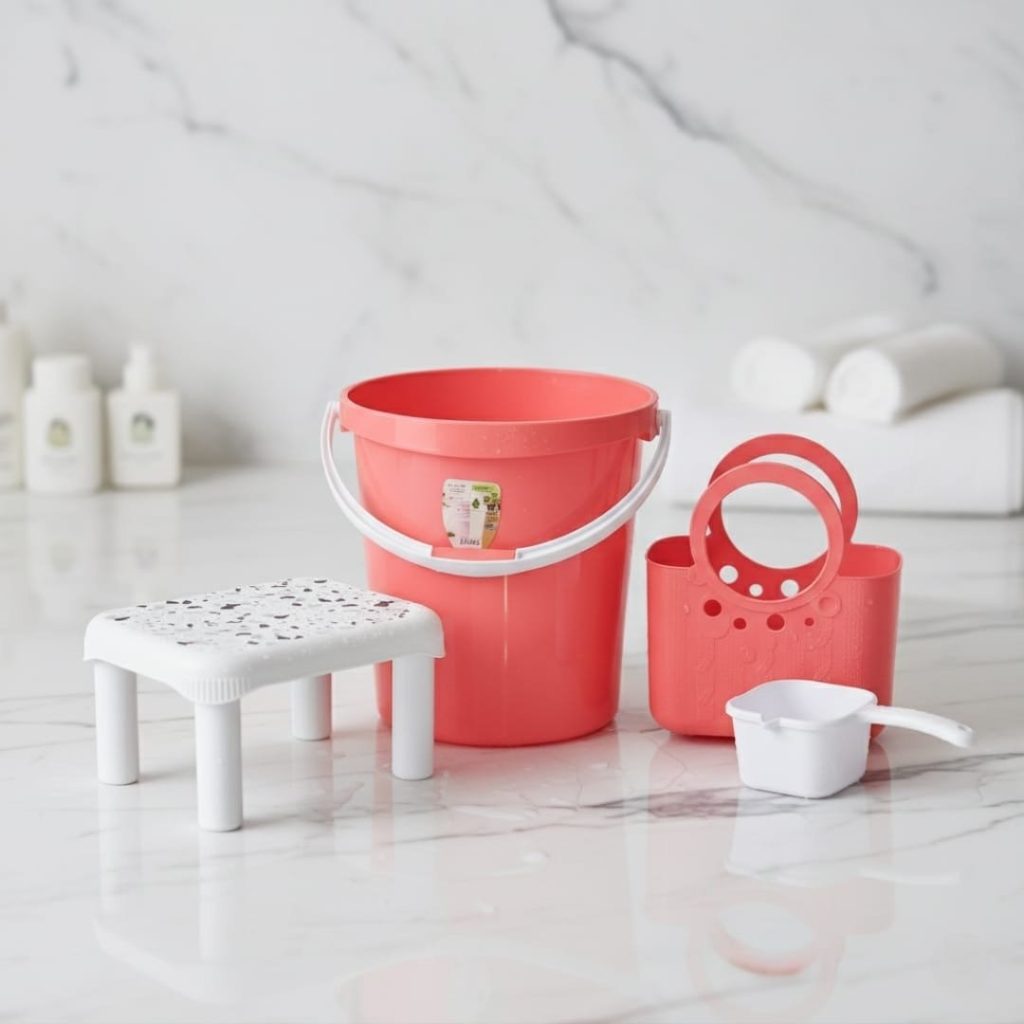 Pack hamam couleur rose -un seau 25 l ,une chaise et broc avec bec pratique et un panier assortis