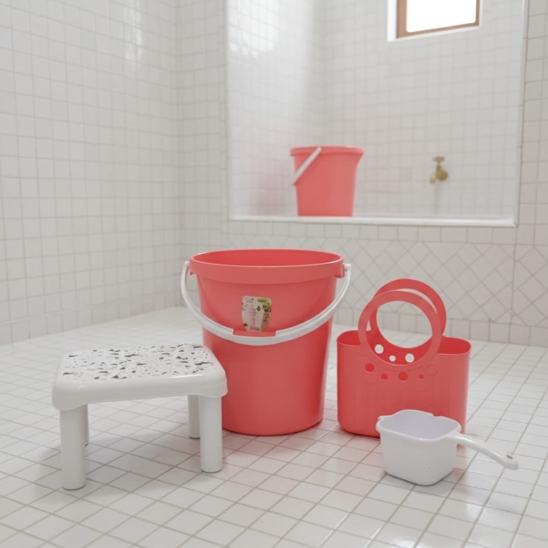 Pack hamam couleur rose -un seau 25 l ,une chaise et broc avec bec pratique et un panier assortis