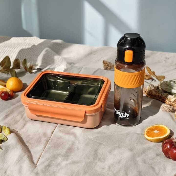 Pack Lunch box et gourde assortie moderne et fonctionnel avec 4 compartiments internes pour organiser les repas. L’intérieur est en acier inoxydable, garantissant une bonne isolation thermique et une utilisation durable. Facile à nettoyer, sans BPA et sécurisé pour les aliments.