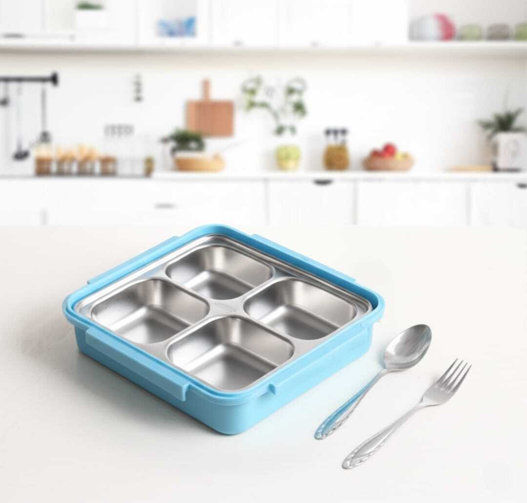 Doté d’une poignée intégrée pour un transport pratique et livré avec une cuillère et une fourchette en inox, il convient parfaitement aux étudiants et professionnels pour leurs repas à l’école, à l’université ou au bureau.4 compartiments pour une bonne organisation des repas.