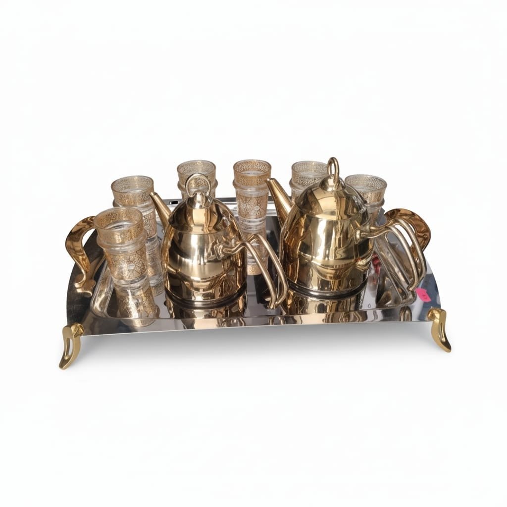 Pack Service à Thé moderne en inox 18 crt +12 verres cristallin c– 2 Théière 1,2L et 0,9L + Plateau seden 47/34cm