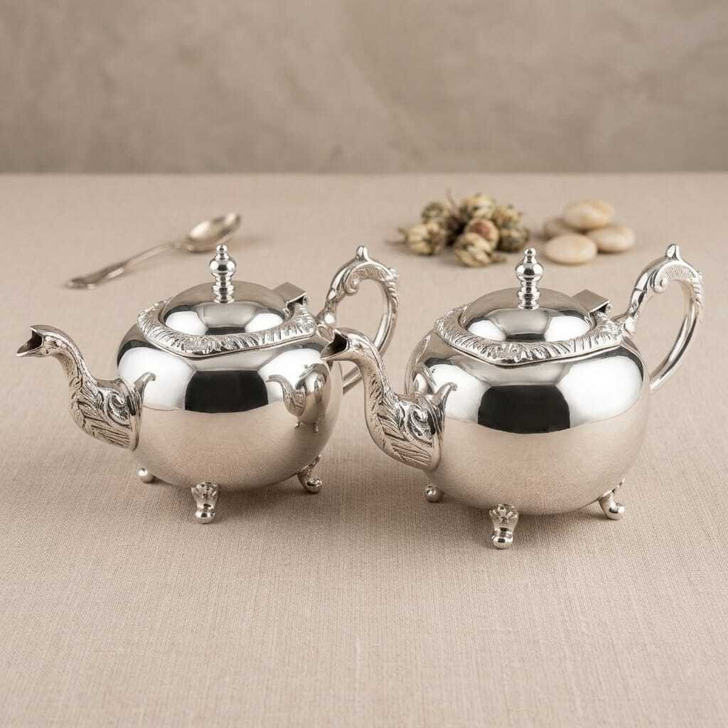 Pack Théières de Prestige en Bronze Rhodié Argent 1,5 et 1L -fait main-collection Aya Home-bronze nickelé résistant-entretien facile