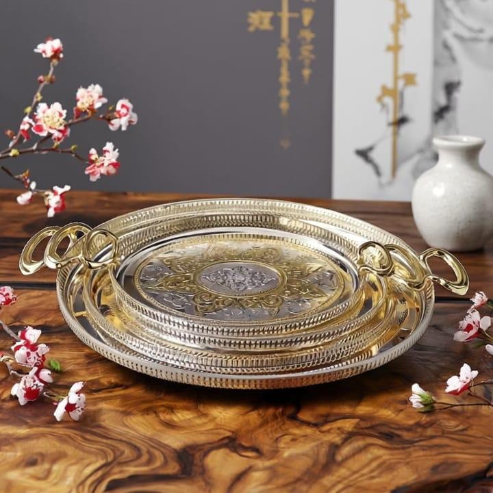 plateau Mm 55/34cm argenté avec anses à servir ou présentation en inox très haute qualité, Argenté avec détails dorés