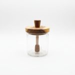Pot à miel en verre avec couvercle en bois et cuillère intégrée pratique – Design élégant et pratique GM 13 /9 cm