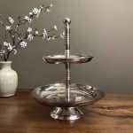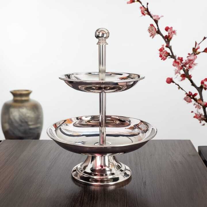 Présentoir feda à Gâteaux en bronze de Fes inoxidable à 2 Niveaux – Plateau de Service Chic pour Fêtes et Réceptions- 30/20/16 cm-argente