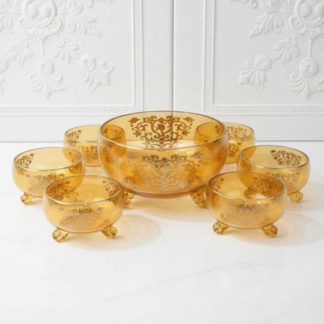 Service de bols en cristal beige dore – Ensemble 7 pièces élégantes pour desserts, salades ou apéritifs 7/11cm et 11/17CM