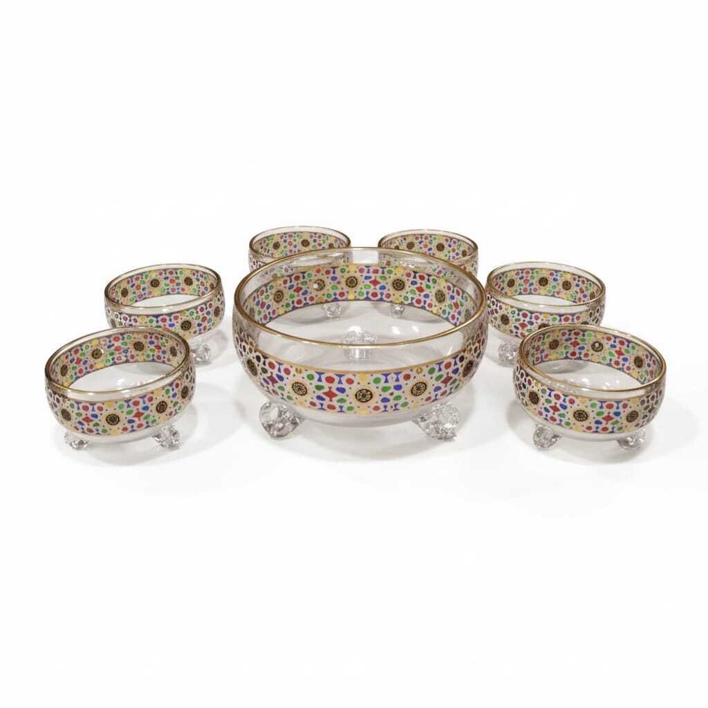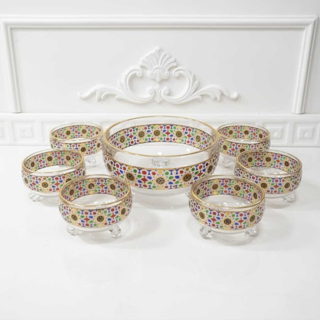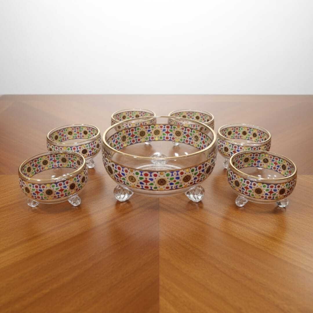 Service de bols en cristal transparent décoré de motifs multicolores – Ensemble 7 pièces élégantes pour desserts, salades ou apéritifs 7/11 cm et 11/17cm