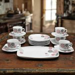 Services de table 19 pièces en porcelaine Blanc avec petit motifs colorés. très bonne qualité de porcelaine résistant au lavage au lave vaisselle aussi. Pour 6 personnes, composé,de 6 grandes assiettes de 20cm/20cm ,6 assiettes moyennes de 14cm de 6 tasses de 200 ml de et une assiette à gâteau de 29cm/20cm .Ces pièces confectionnées en porcelaine fine sont rehaussées d’une délicate décoration de couleur Ce sublime service inclut tout ce dont vous avez besoin pour servir un délicieux repas Un très bon rapport qualité prix à ne pas rater