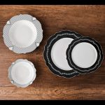SERVICE DE TABLE 24 PCS DÉTAILS NOIR EN CÉRAMIQUE