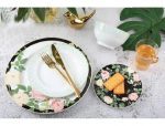 SERVICE DE TABLE 24 PCS EN PORCELAINE BLANC DÉTAILS VERT