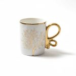 Set de 6 tasses 100ml à thé en porcelaine avec soucoupes dorées – Élégance et raffinement intemporel