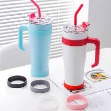 Thermos thermique-grande capacité XXL -Mug Inox avec poignée et paille – Grande capacité – Idéal boissons chaudes et froides 1,2 L -garde le froid ou chaud 18h-blanc