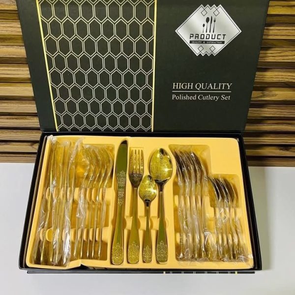 Le prix initial était : 799,00Dhs.439,00DhsLe prix actuel est : 439,00Dhs.Ménagère de Couverts de Luxe 24 Pièces – Acier Inoxydable Finition Or – Coffret Cadeau Élégant – Service Complet pour 6 Personnes – Idéal pour Mariage et Réceptions